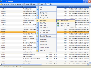 Easily manage your karaoke, video, and audio files and correct title errors easily with powerful batch editing. Supports the most common standard naming formats. Automatically auto-corrects for underscores and capitalization, swap Title and Artist, shift, split, and replace field data on multiple files at once, automatically keeps zip content file names (mp3 & cdg files) in synch for MP3+G zipped files, exports and converts to many format combinations, and more!